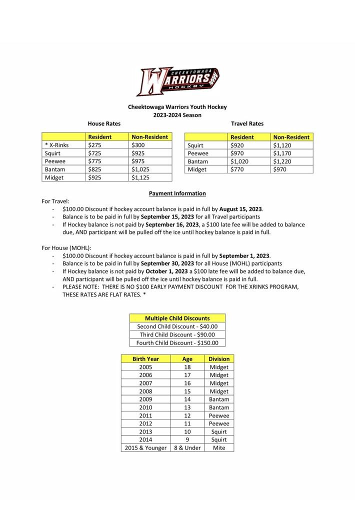 Hockey Payments are accepted at the Cheektowaga Hockey Office & by phone.